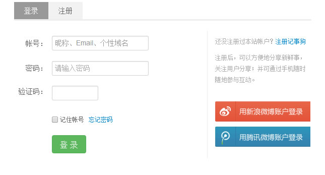 - 灵活多样的注册登录方式,游客浏览网站可弹出快捷登录框